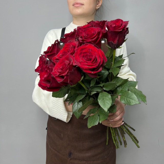 Состав: роза красная (7) -11, лента-2